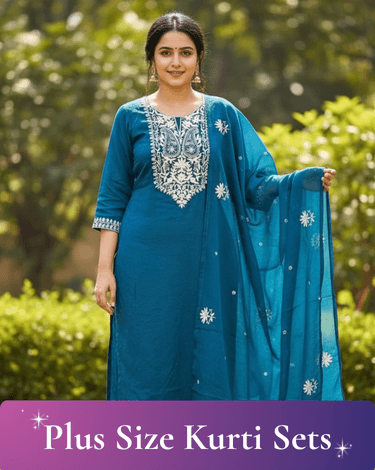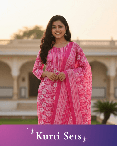 Multi-Color Floral Pattern Round Neck Cotton Kurti Set