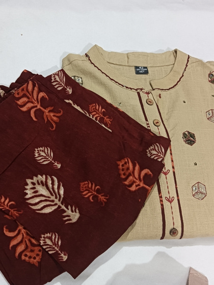 Beige Floral Kurti with Checkered Pants