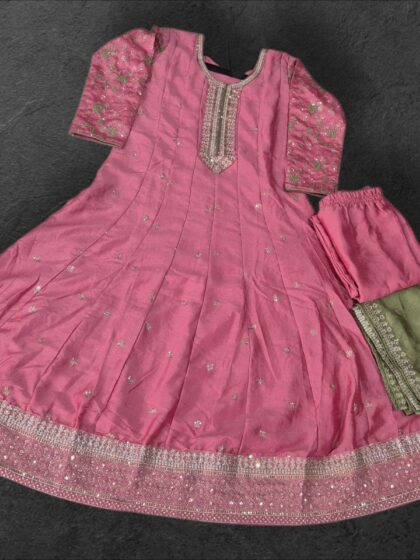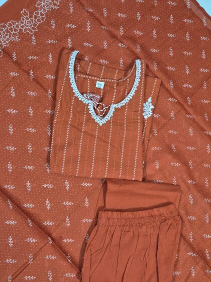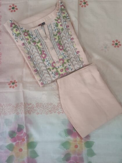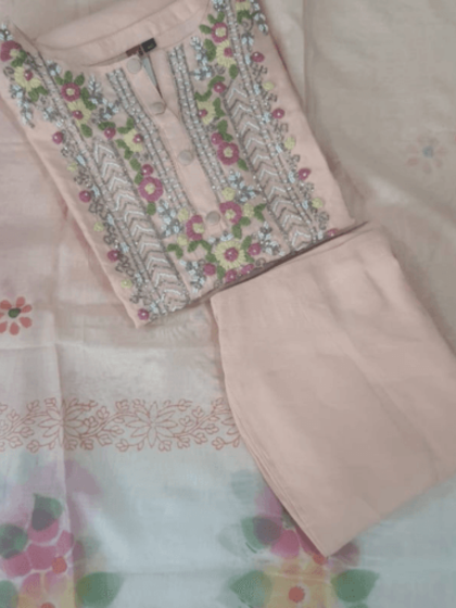 Peach Suit Set – Floral Embroidery, Round Neck