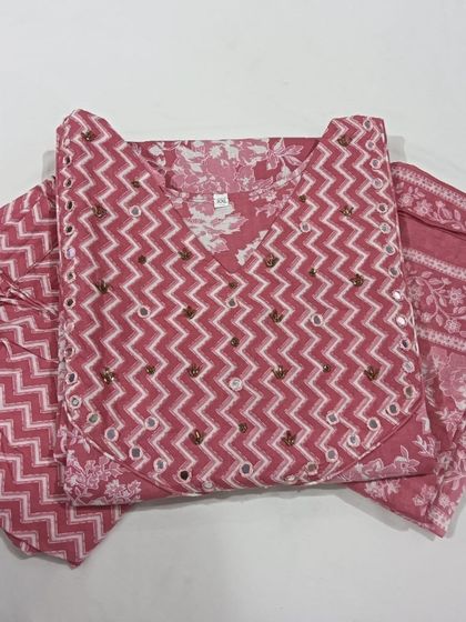 Pink Geometric Cotton Kurti Set