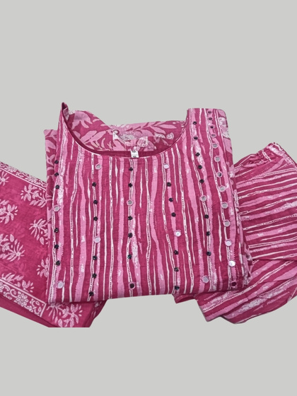 Pink Mirror-Work Striped Kurti Set