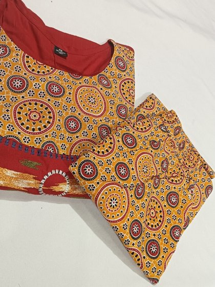 Red and Mustard Printed Kurti Set