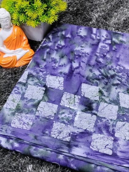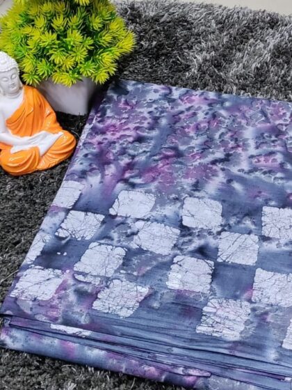 Lavender Cotton Saree with Tie-Dye Checkered Pattern