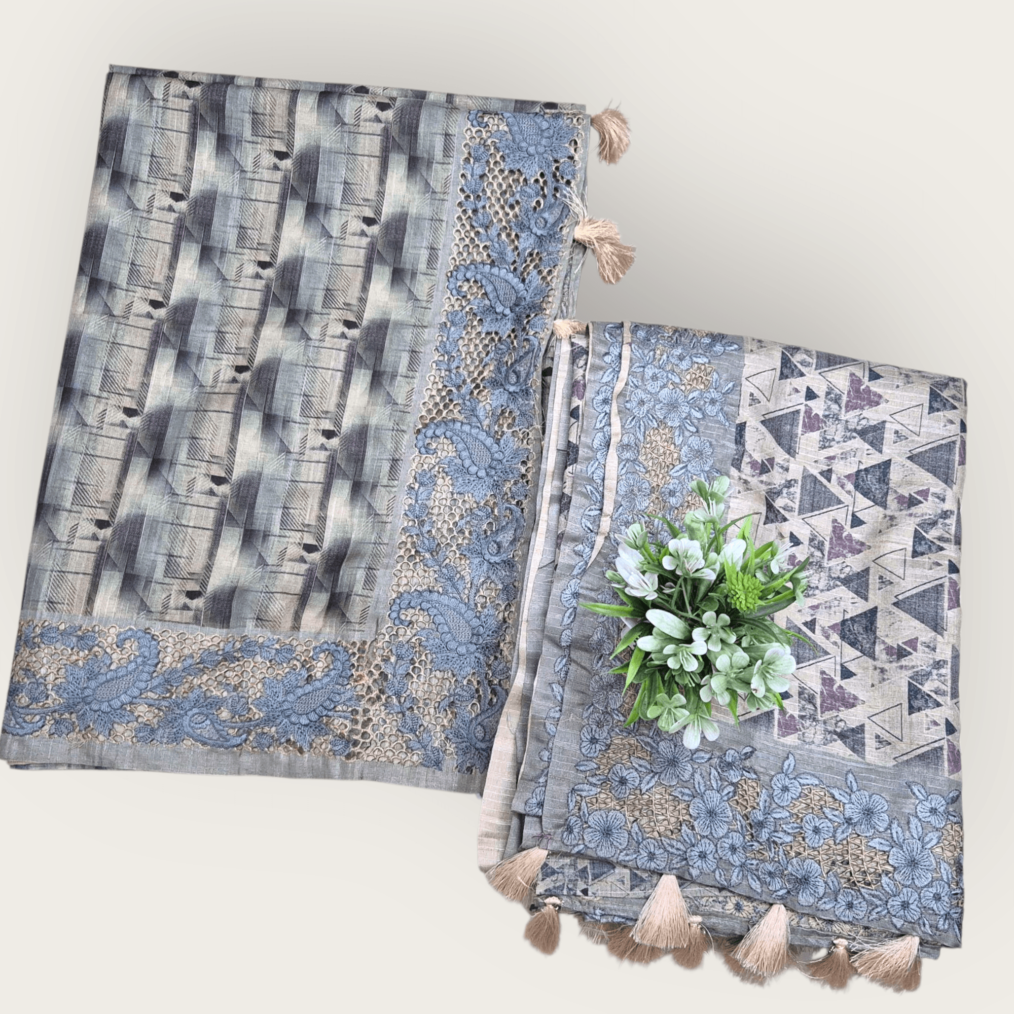 Subtle Floral Pattern and Tasselled Pallu Semi Tussar Saree