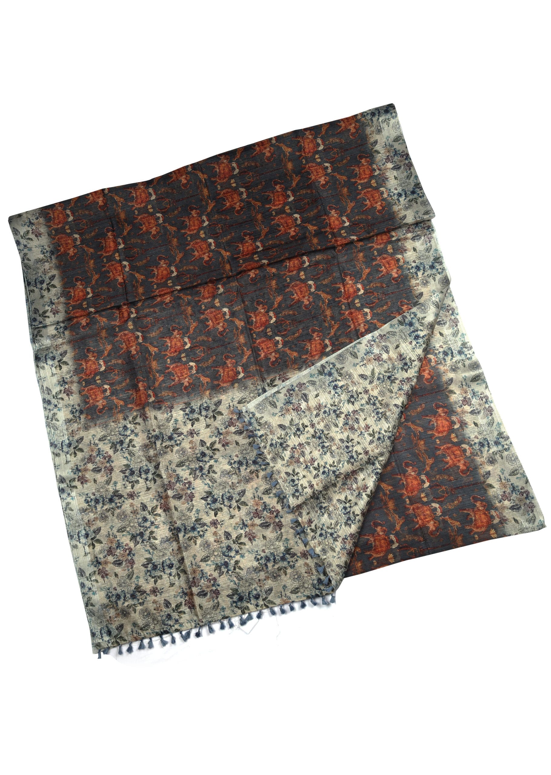 Be the first to review “Black & Brown Jute Silk Saree with Small Floral Print” Cancel reply