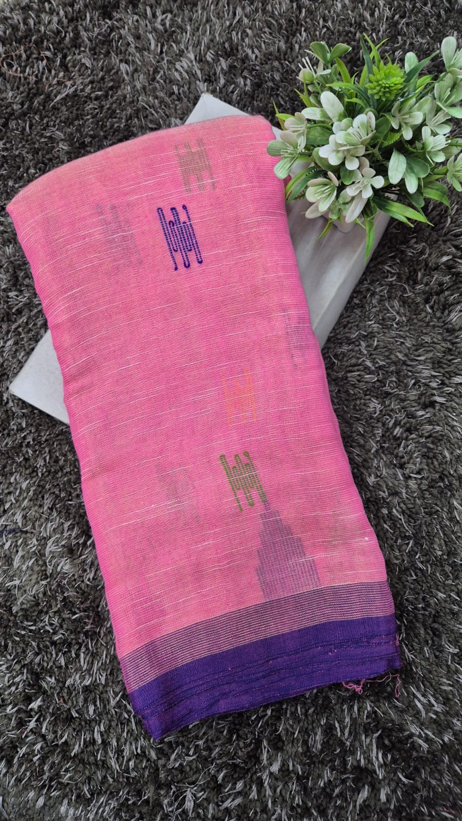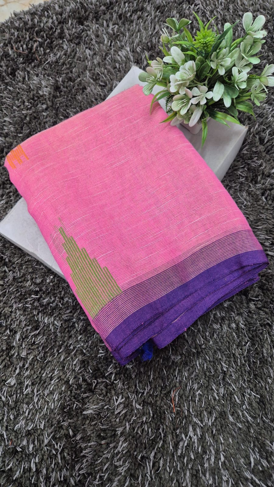 Be the first to review “Bright Pink Khadi Tissue Saree with Contrast Purple Stripes” Cancel reply