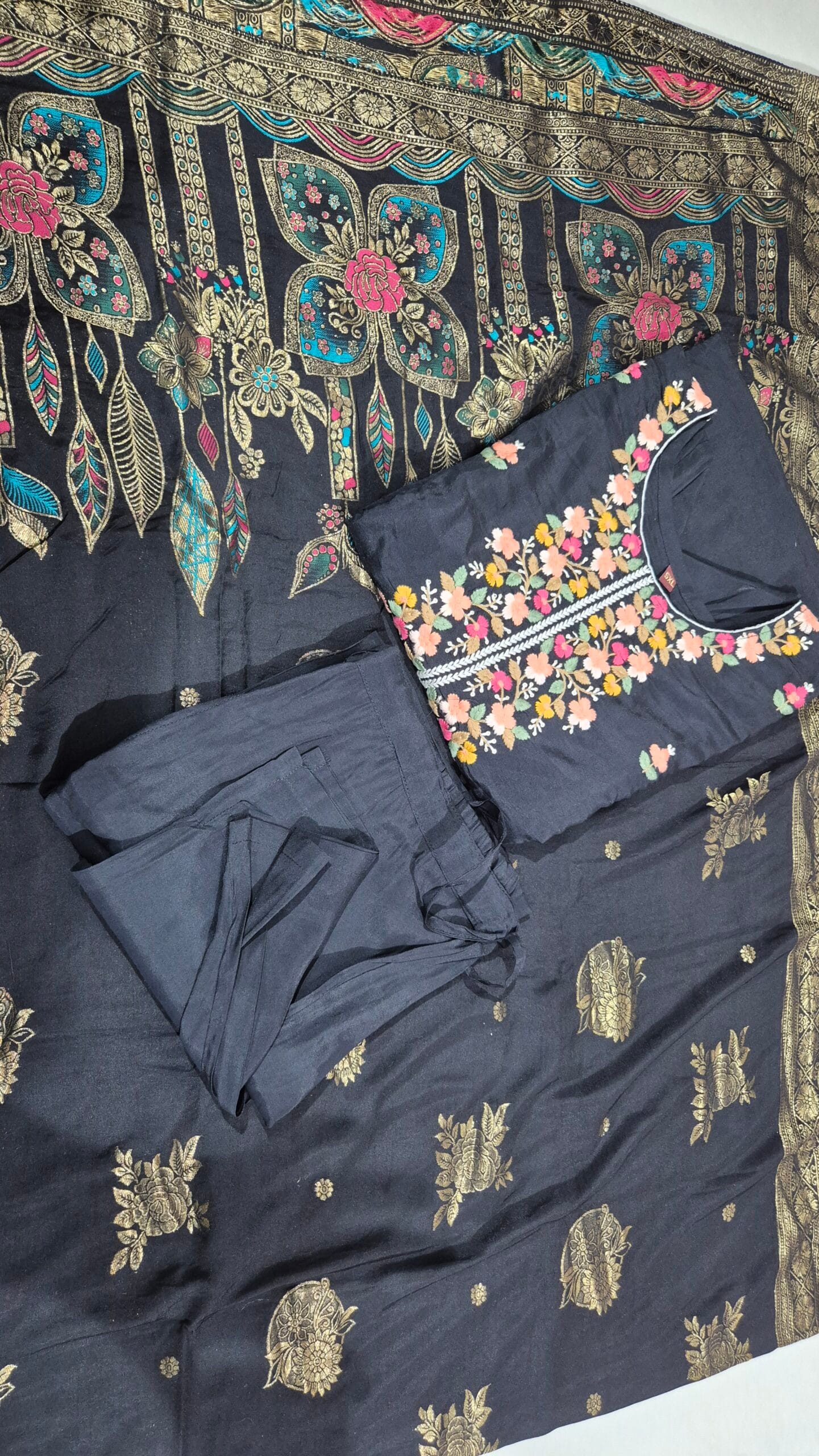 Chickenkari kurti set with pant and dupatta.Top with lining.