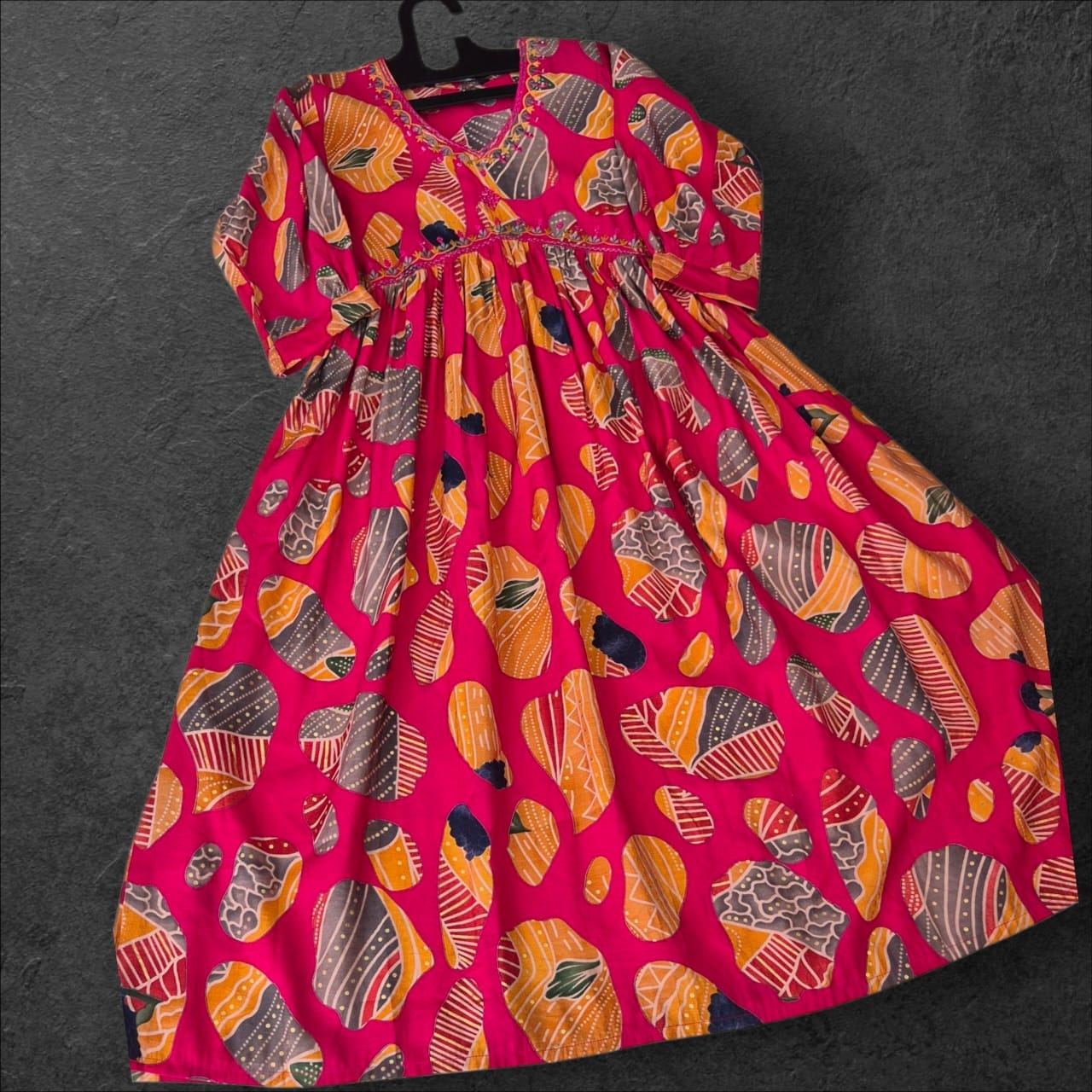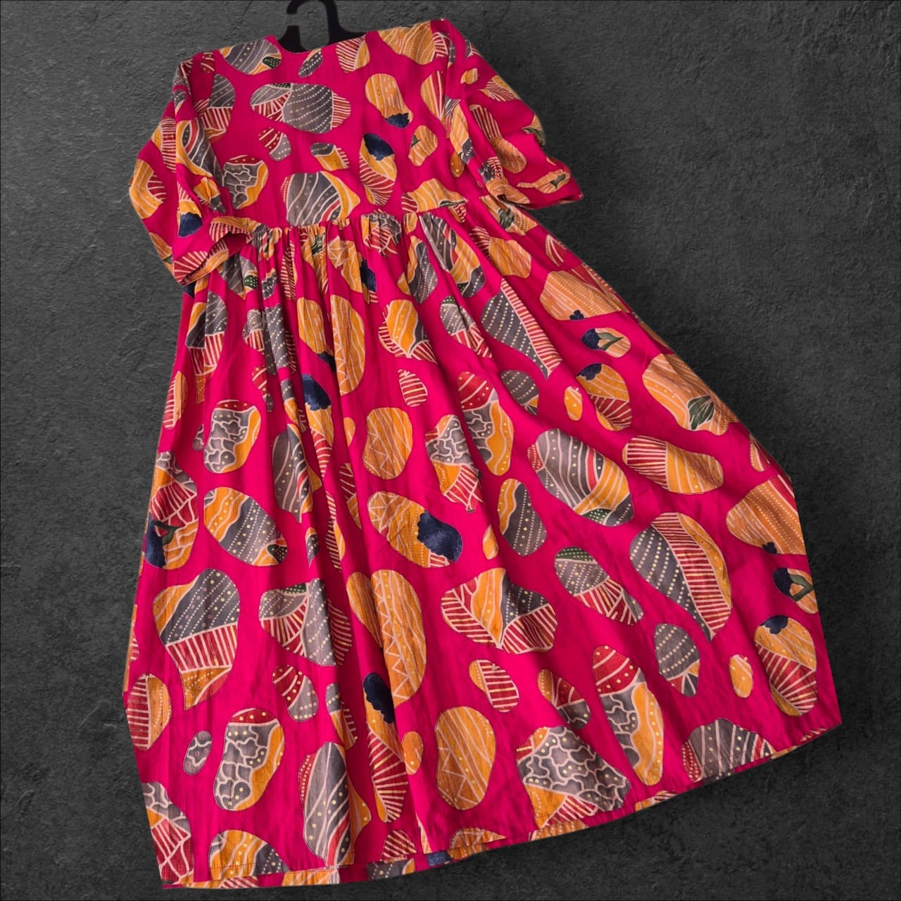 Fuchsia Leaf Motif Rayon Umbrella Kurti