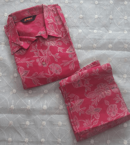 Be the first to review “Fuchsia Pink Silver Foil Print Co-ord Set with Collar Neck”