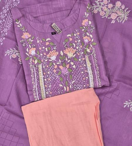 Chanderi cotton kurti set with thread embroidery and lining.Contrast bottom and dupatta