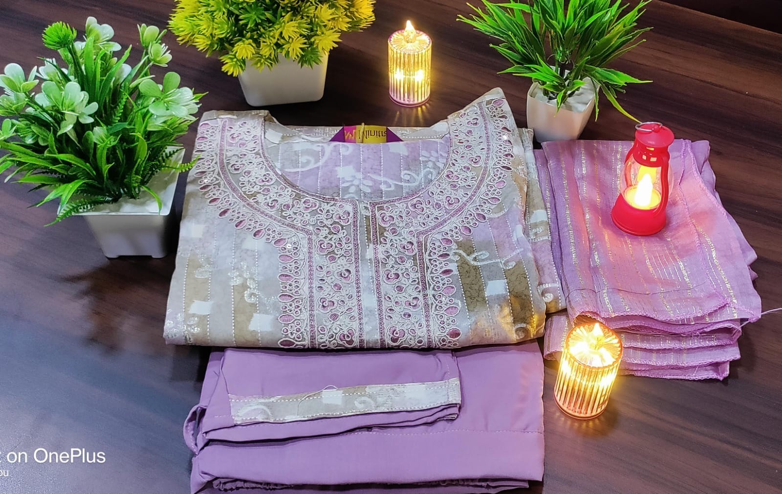 Be the first to review “Lilac Patterned Round Neck Cotton Kurti Set”