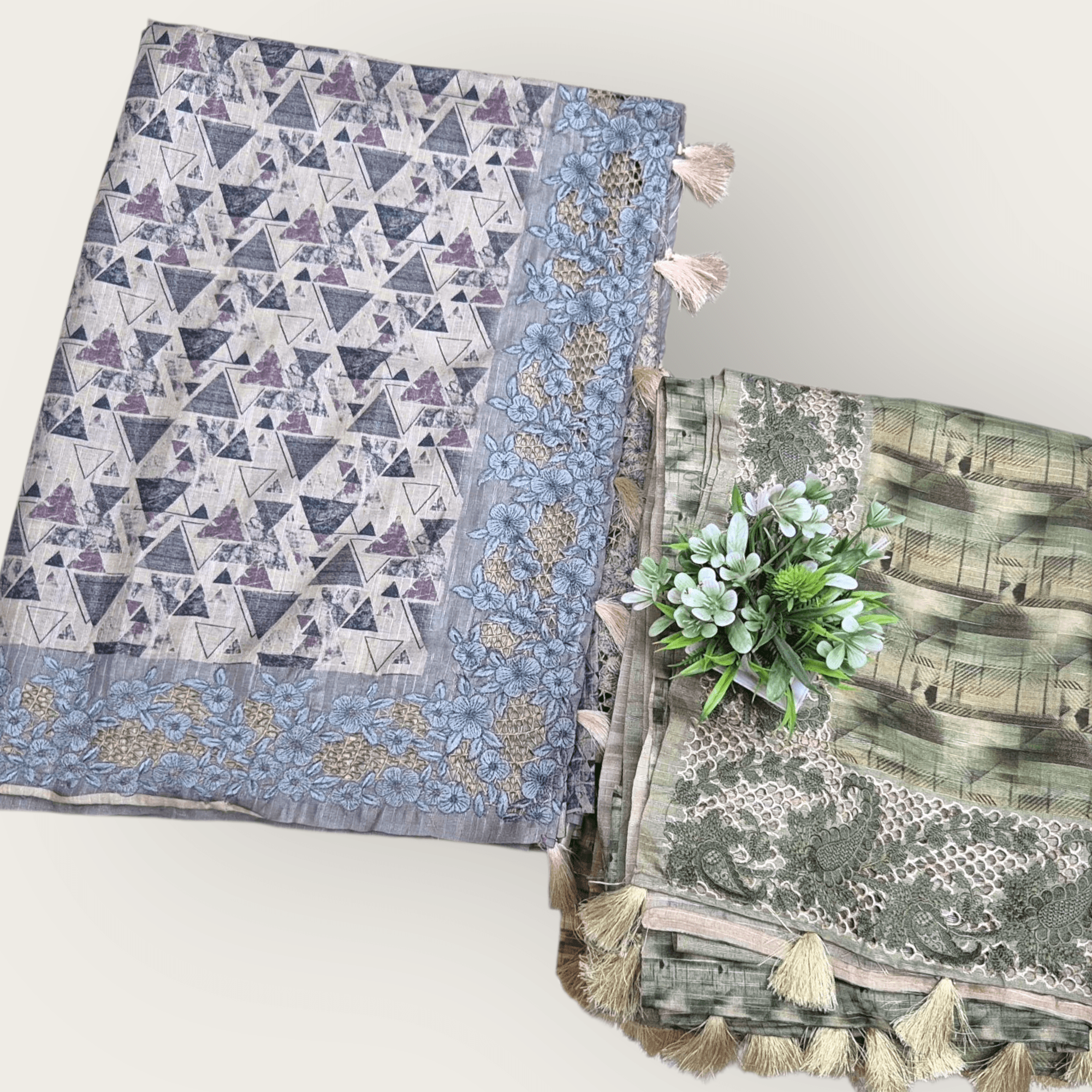 Multi-Color Jute Silk Saree with Soft Floral Watercolor Print