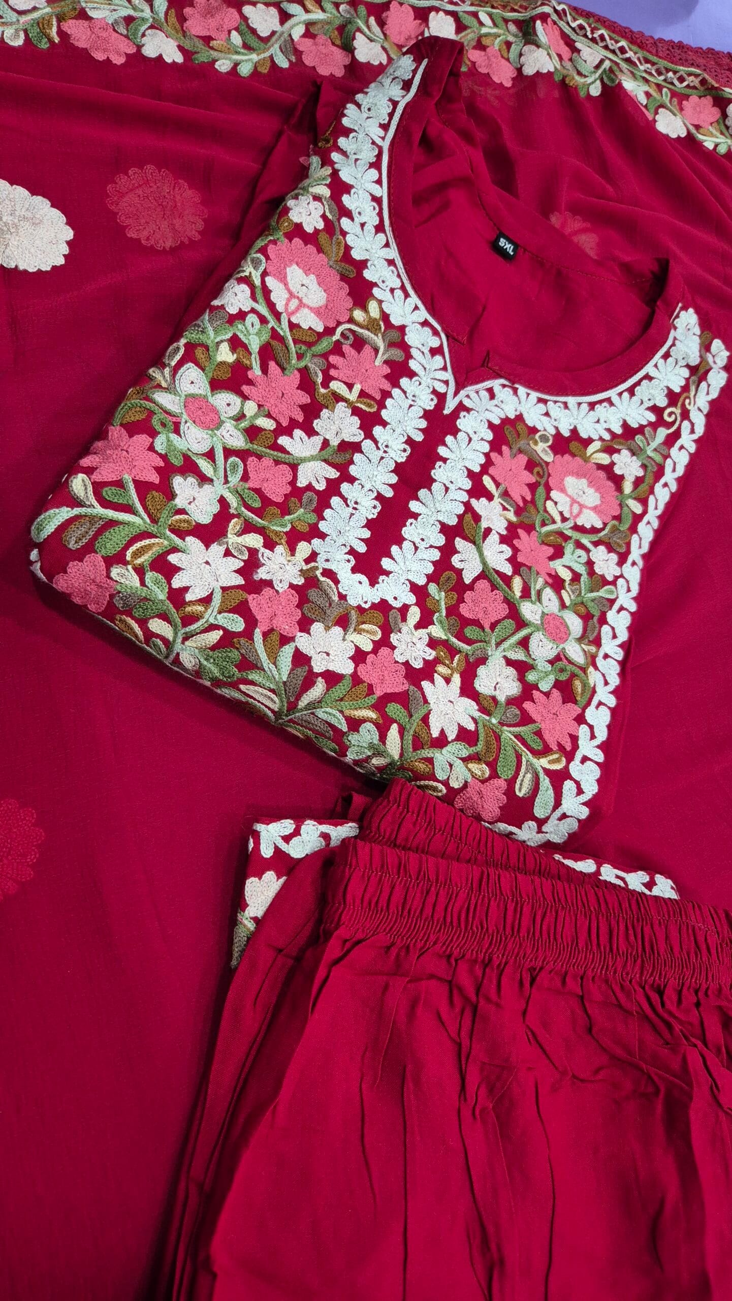 Be the first to review “Maroon Roman Silk Kurti Set with Heavy Multi-Color Embroidery”