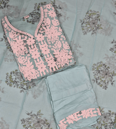 Blue Mul Chanderi Anarkali Duppata Set With Bottom.