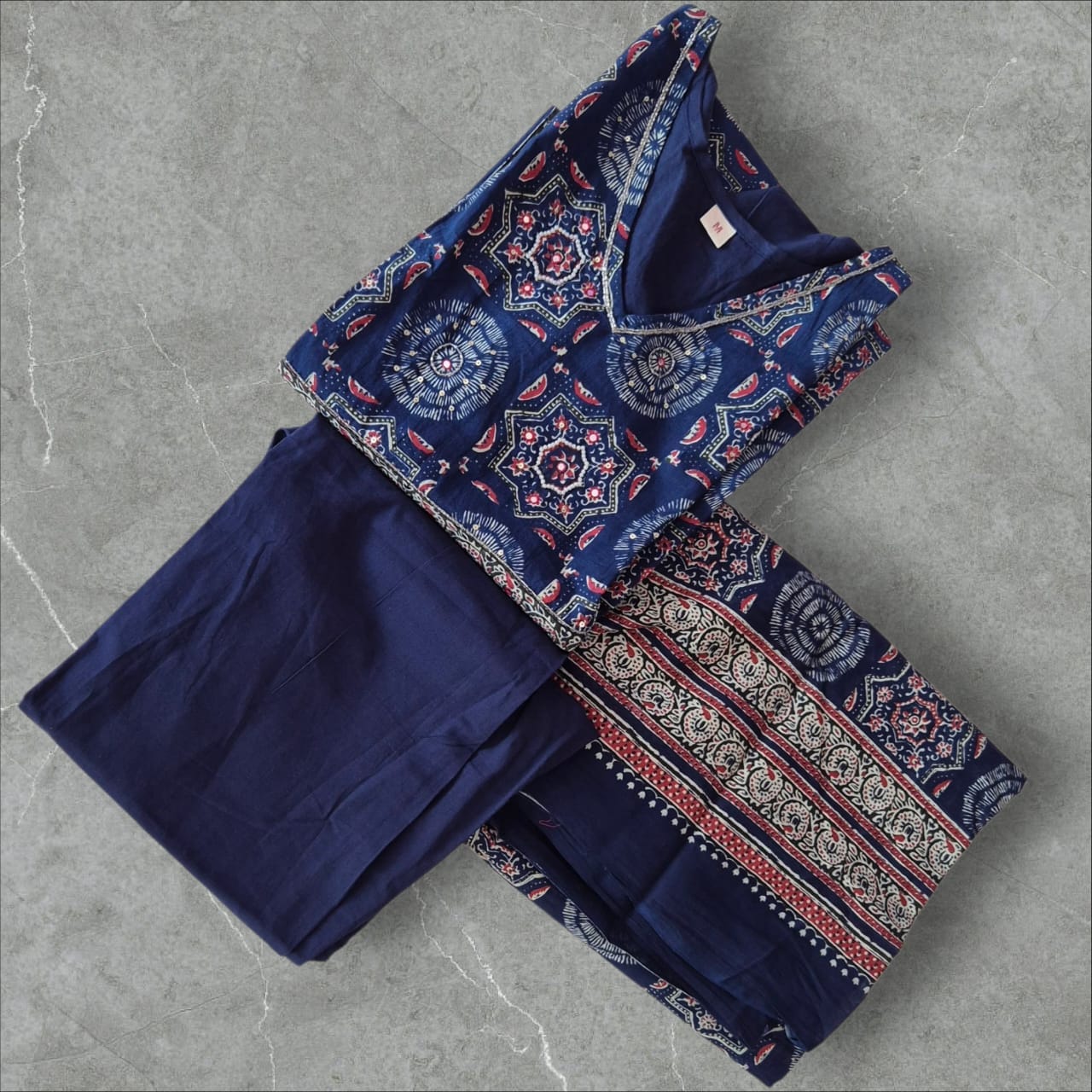 Pure cotton kurti sets V neck with bottom and dupatta.