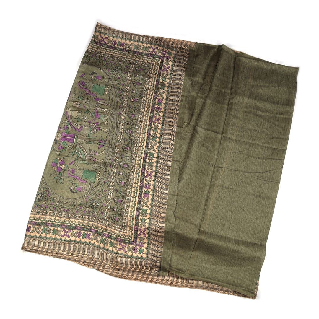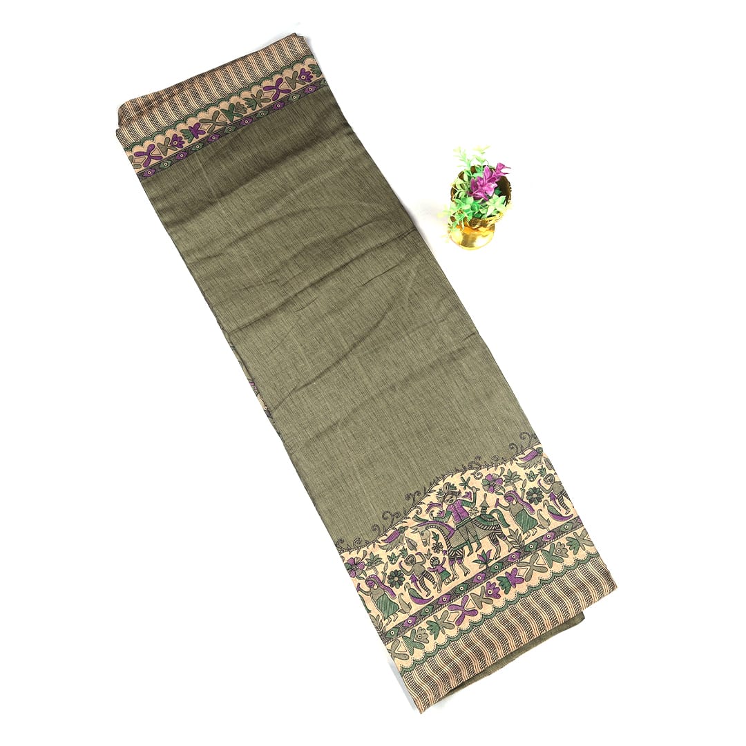 Home » Shop » Olive Green Fancy Saree with Madhubani Printed Border