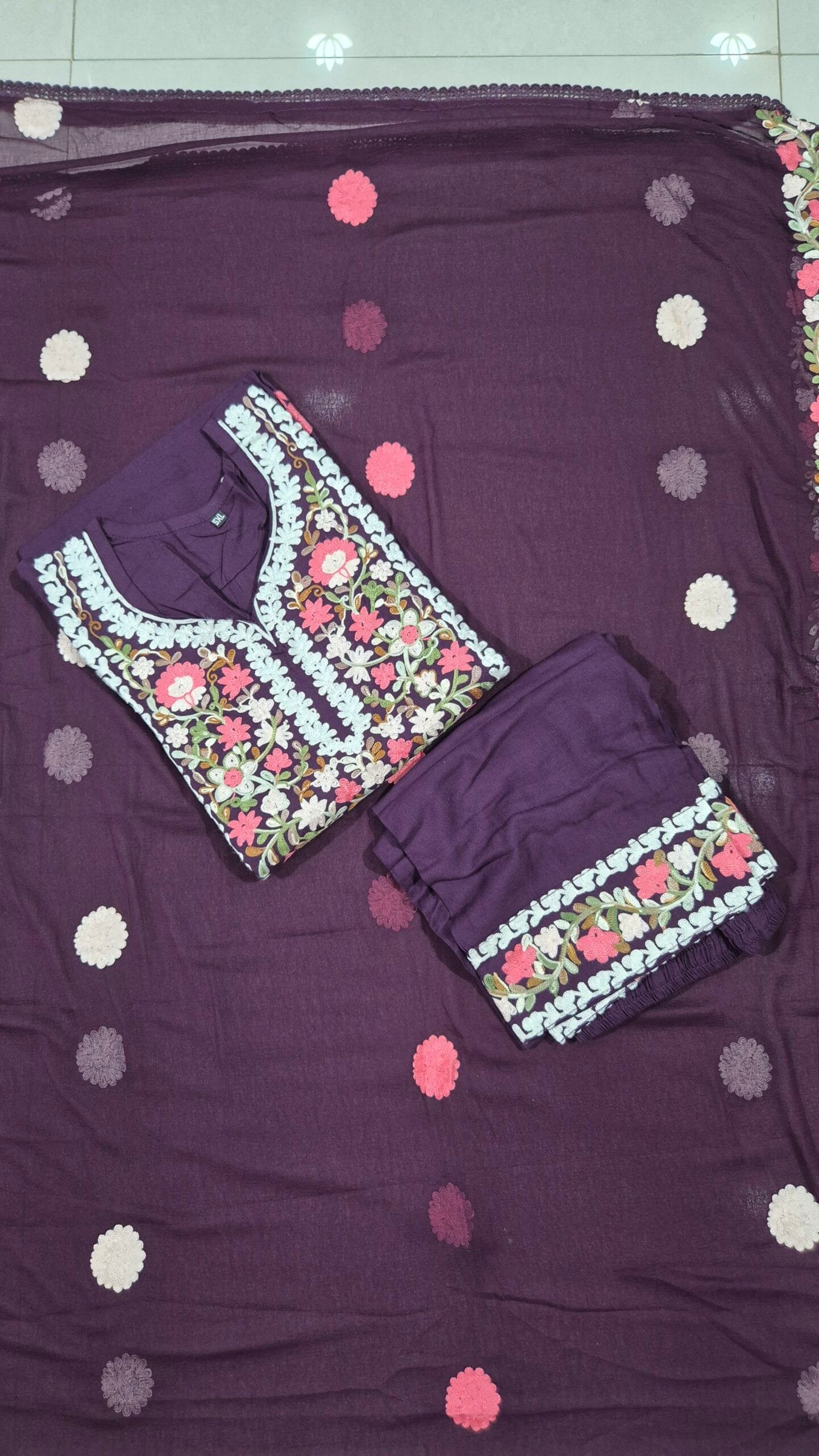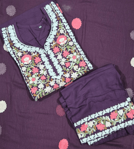 Top with heavy embroidery work with 3/4th sleeves, comes with bottom and dupatta .