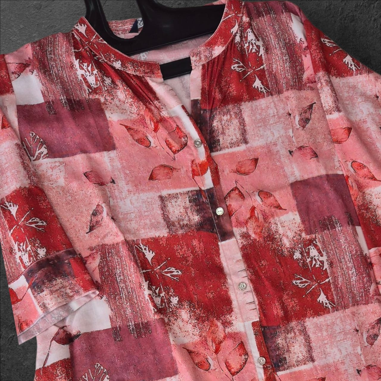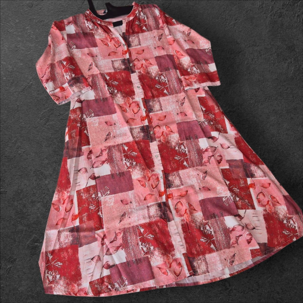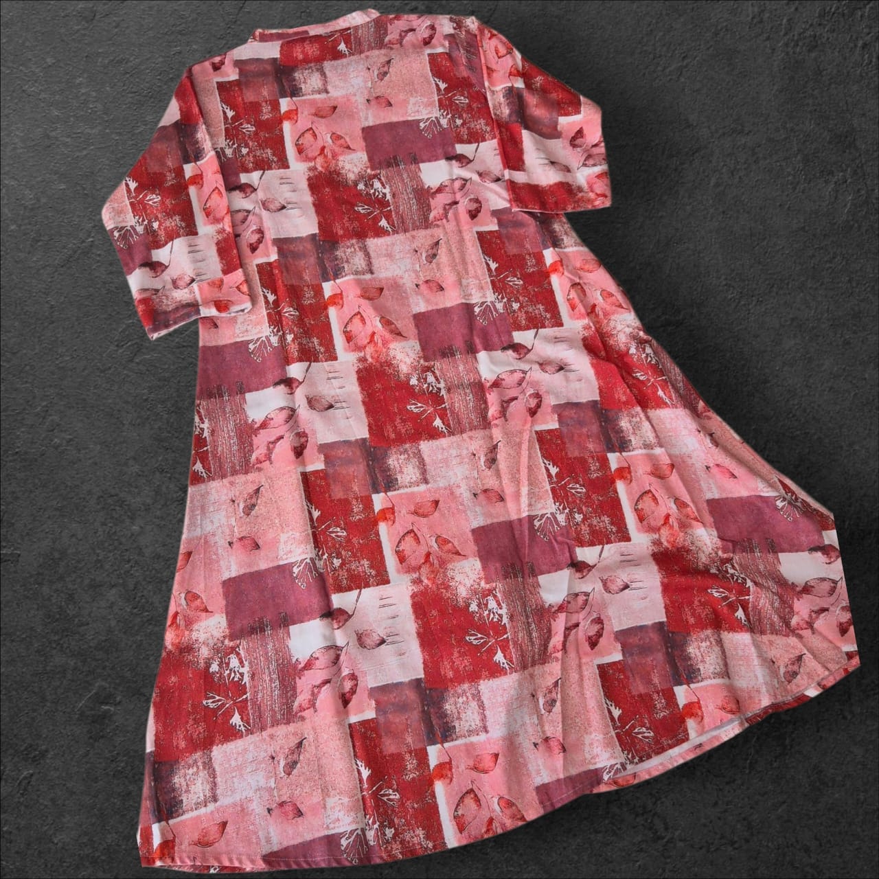 Be the first to review “Red Geometric Pattern Round Neck Aline Rayon Kurti”