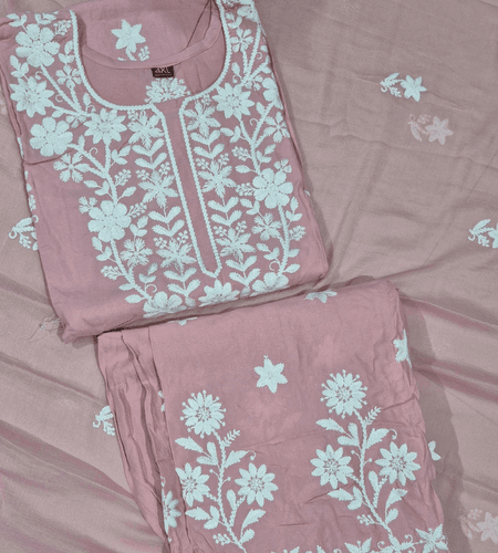 Roman Silk Chickenkari work kurti set with dupatta.