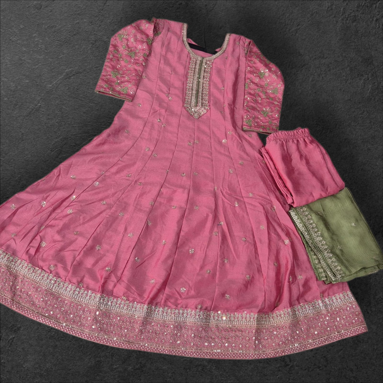 Home » Shop » Rose Pink Grand Anarkali Kurti Set – Sequin Embellished, Scoop Neck