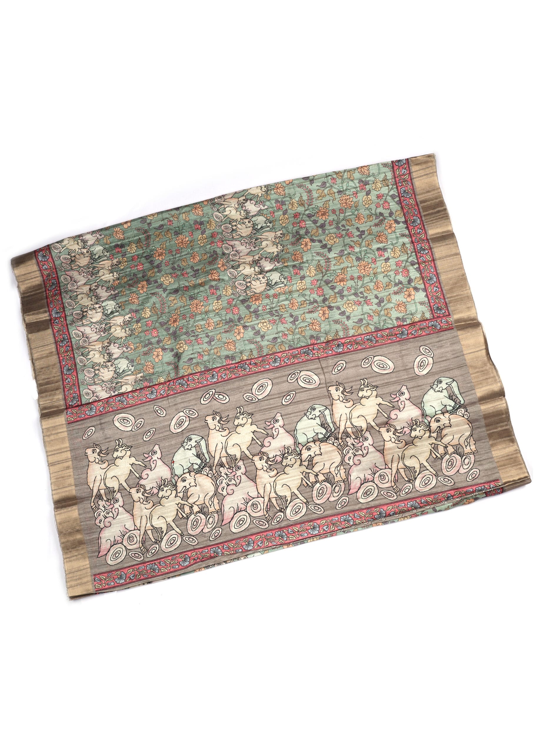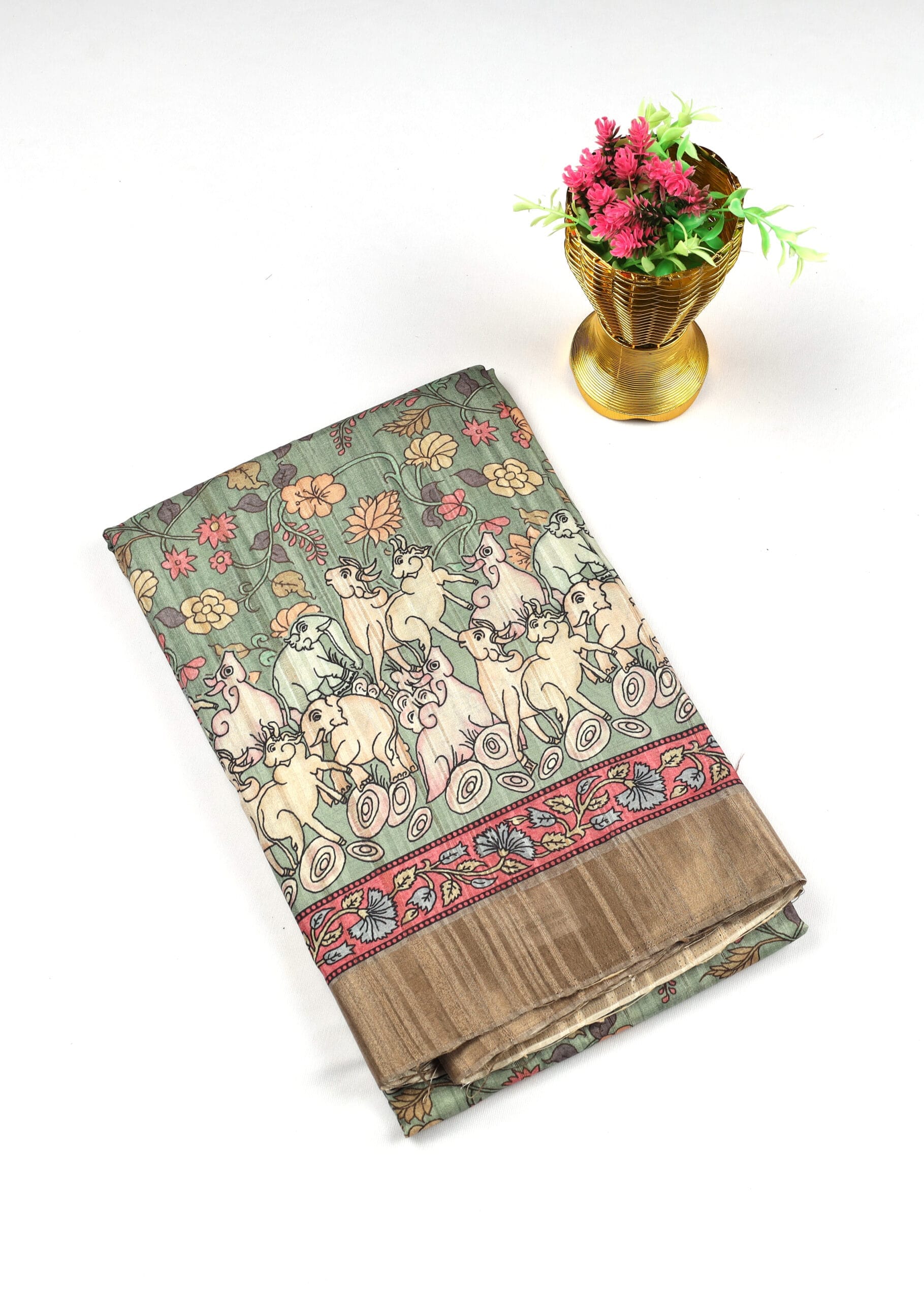 Sema Tussar Printed Sarees with Zari Border and Blouse.