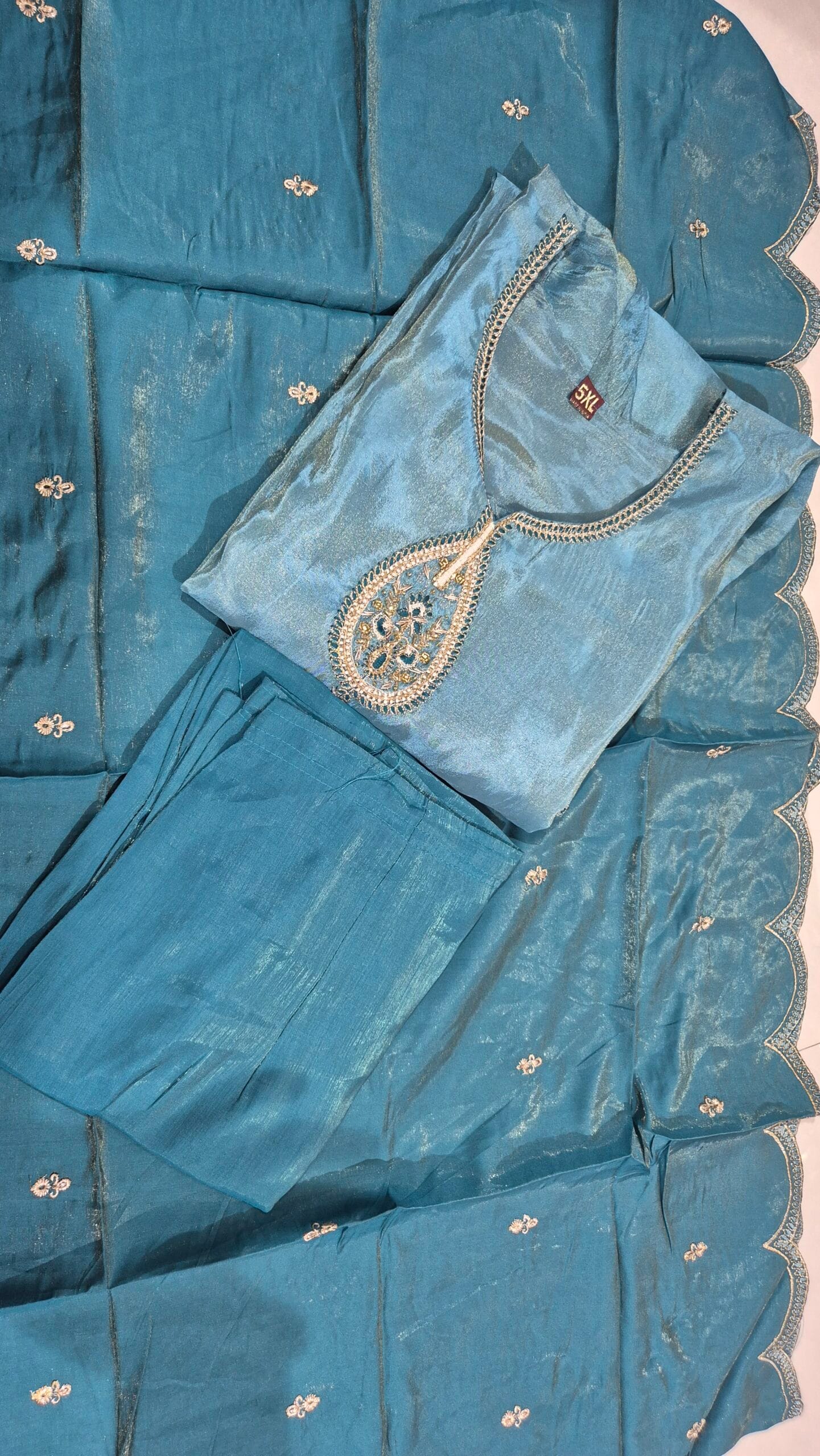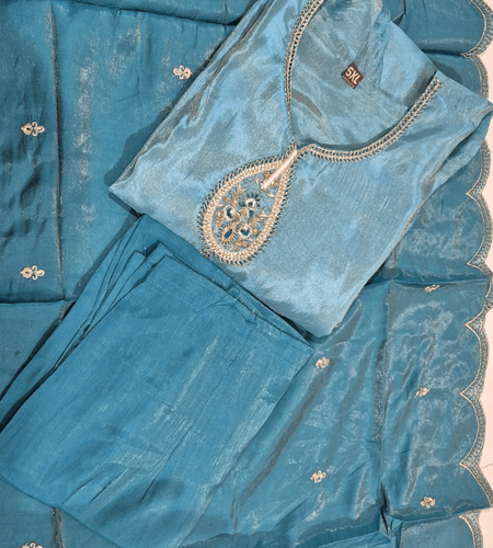 Be the first to review “Sky Blue Soft Silk Kurti Set with Gold Brocade Patch Work” Cancel reply