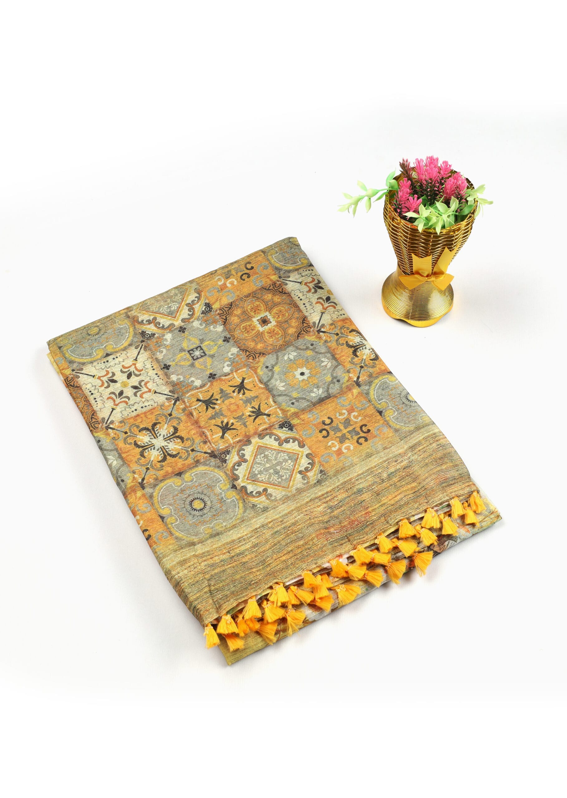 Be the first to review “Yellow Jute Silk Saree with Traditional Patchwork Motifs” Cancel reply