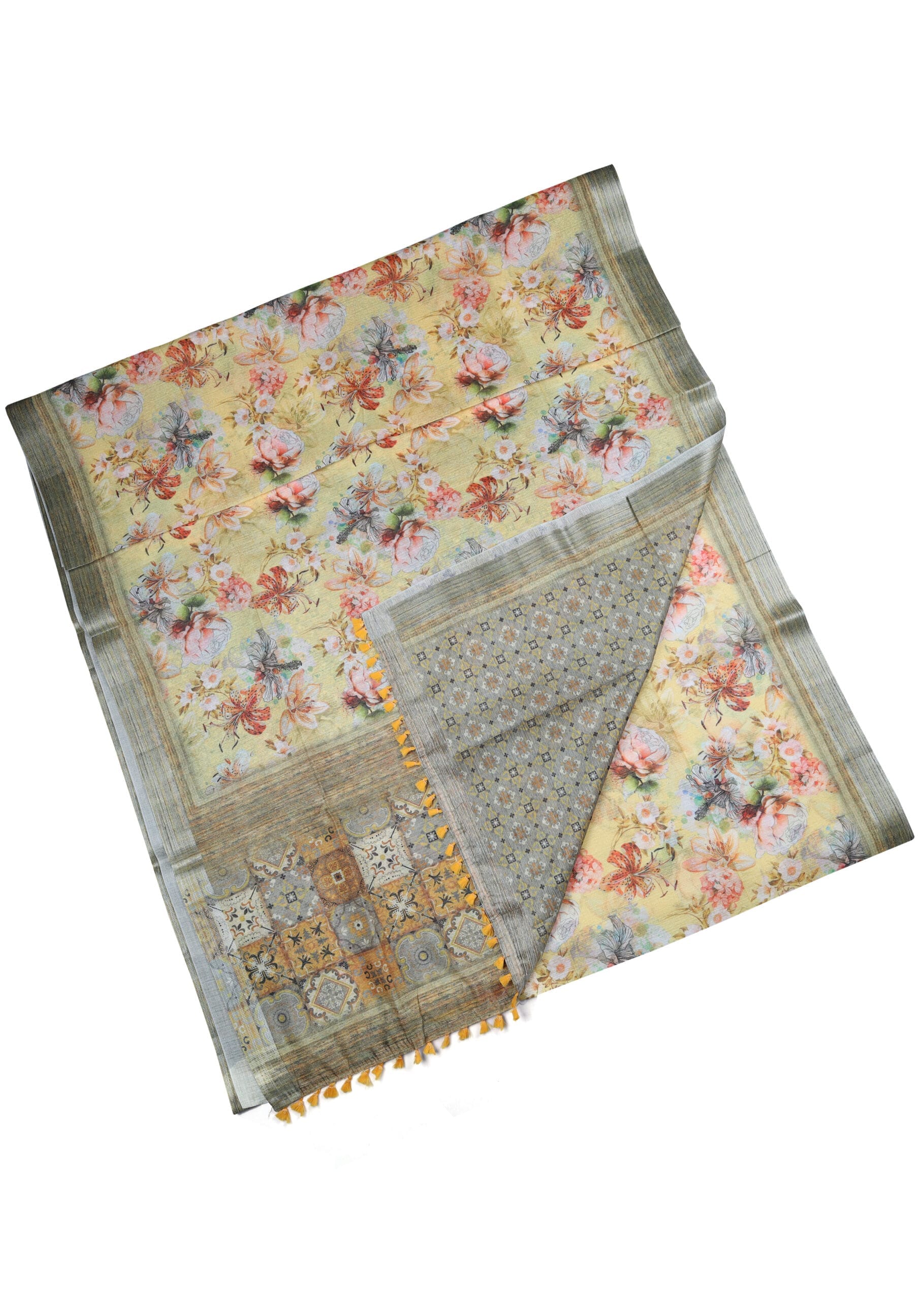 Jute Silk Sarees with Blouse Floral Print Sarees with Sheer Elegance.